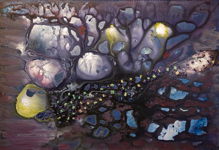 Alla ricerca degli elettroni - Acrilico e vetro su tela