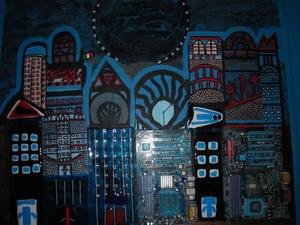 Beyond limits - olio e vetro Castello di Liverzano Citta' tecnologica - olio, vetro e collage di carta