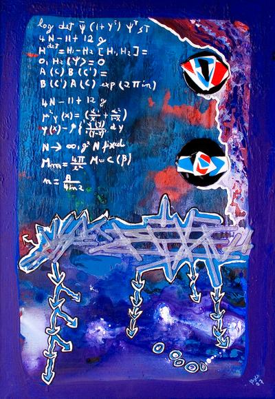 Multiverso (con nipotina) - Acrilico e vetro su tela e vetro e ferro battuto